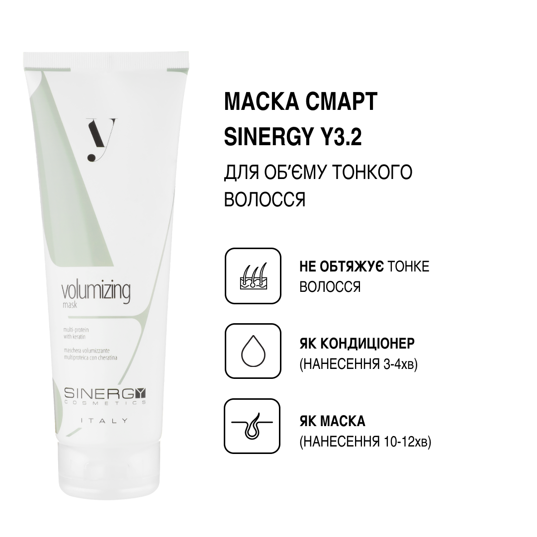 2.Маска Smart для об'єму тонкого волосся серії Y3.2 Sinergy