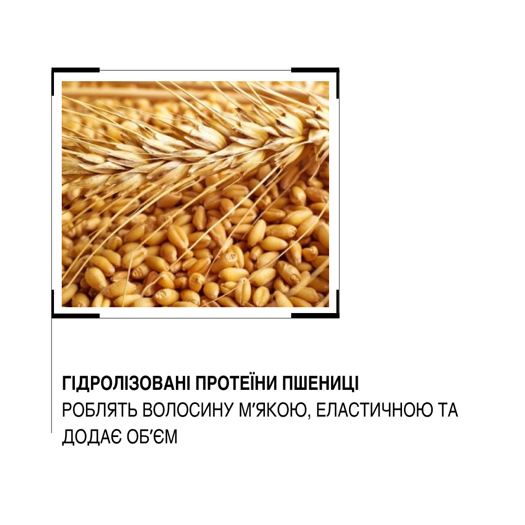 Гідролізований протеїн пшениці — має низьку молекулярну масу, утворює захисну плівку, зміцнює волосся та додає об’єм.