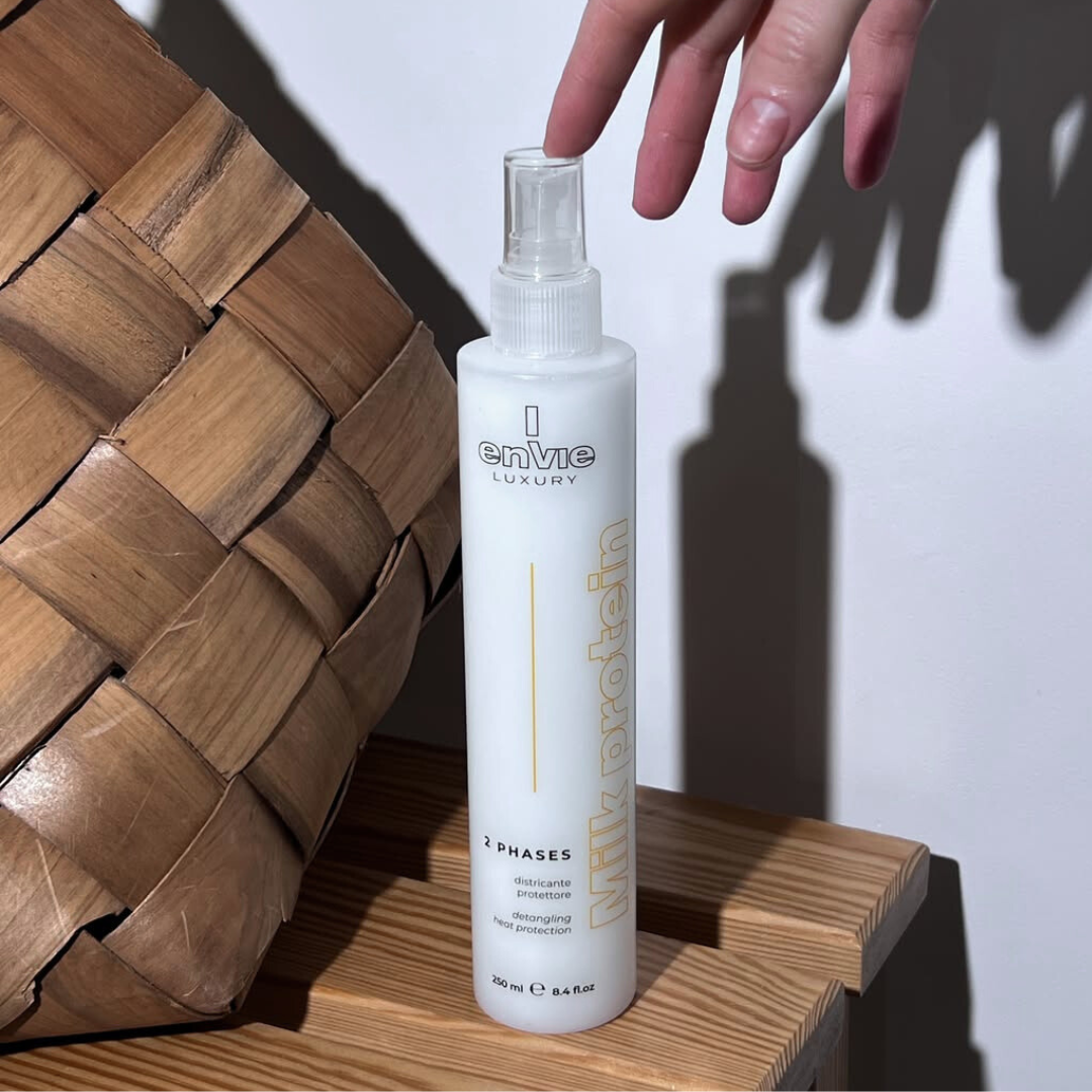 Двофазний спрей Envie Luxury Milk — це ефективний догляд із молочними протеїнами, що відновлює структуру волосся, наповнюючи його силою та життєвою енергією. Формула з молочним цукром та білками забезпечує глибоке зволоження, зменшує ламкість і надає волоссю здорового блиску.