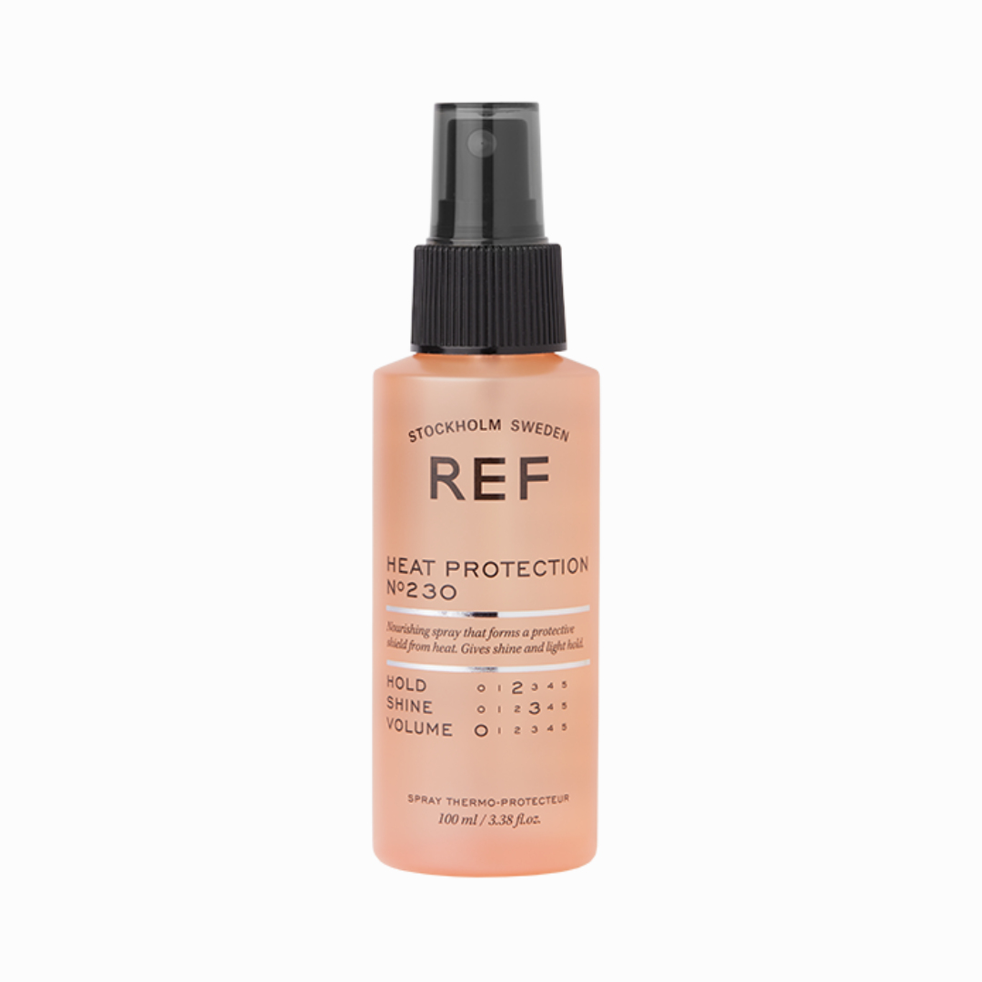 REF Heat Protection N°230 — це професійний засіб, створений для захисту волосся під час використання фена, плойки чи прасок. Він формує невидимий захисний шар, що оберігає структуру волосся від пошкоджень і пересушування при температурі до 230°C.